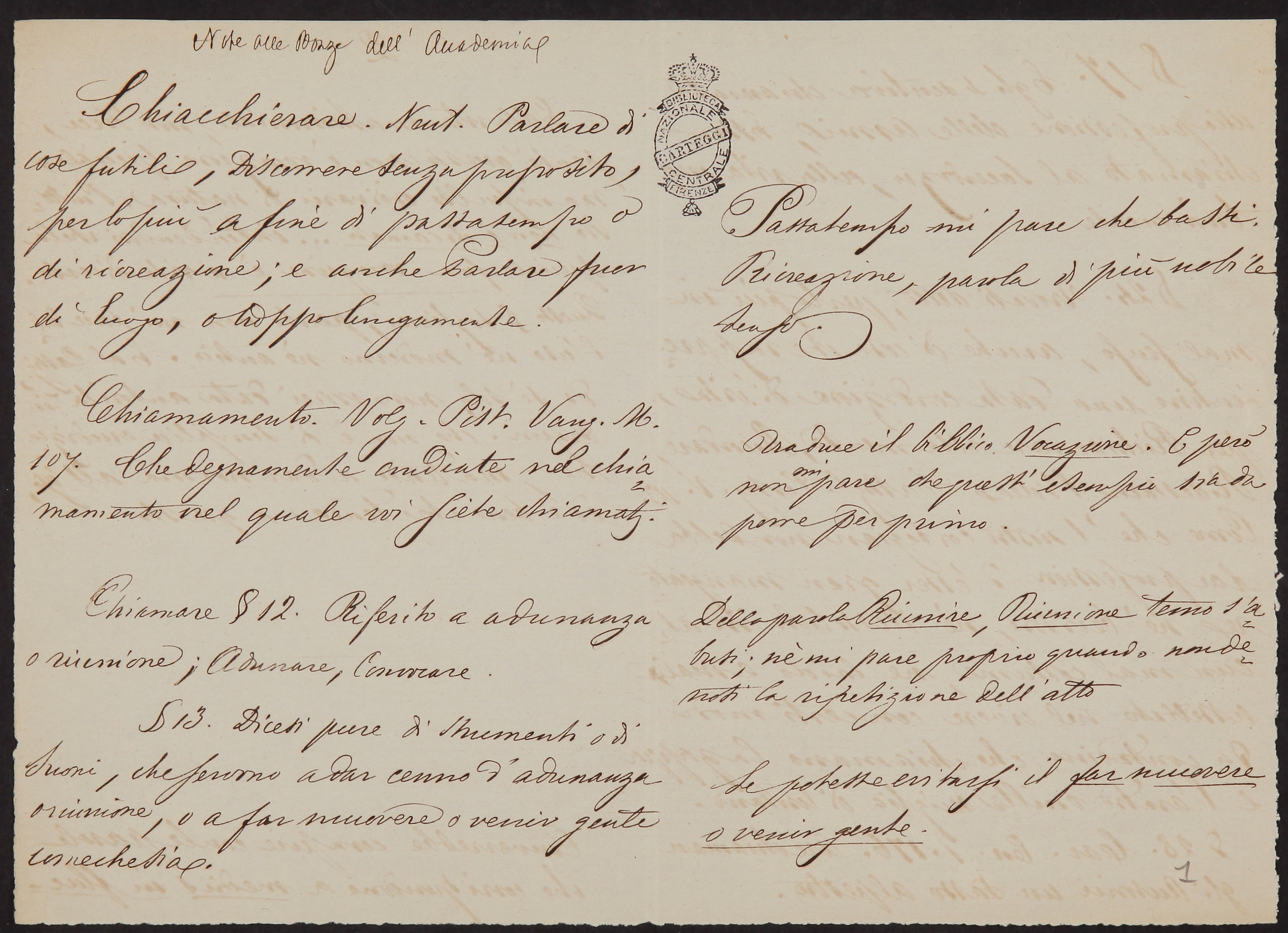 Testimonianze importanti sulla storia del Dizionario
